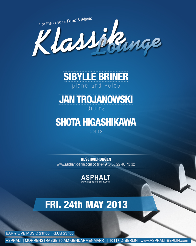 | 19.10.2012 | „Classic Lounge“ mit Jan Trojanowski Asphalt Club Berlin Mohrenstraße 30,10119 Berlin |